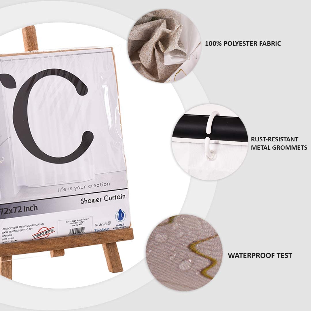 Stone and Reed Shower Curtain, Heavy Duty Design with 12 Grommets and Hooks, 72 x 72 Inches